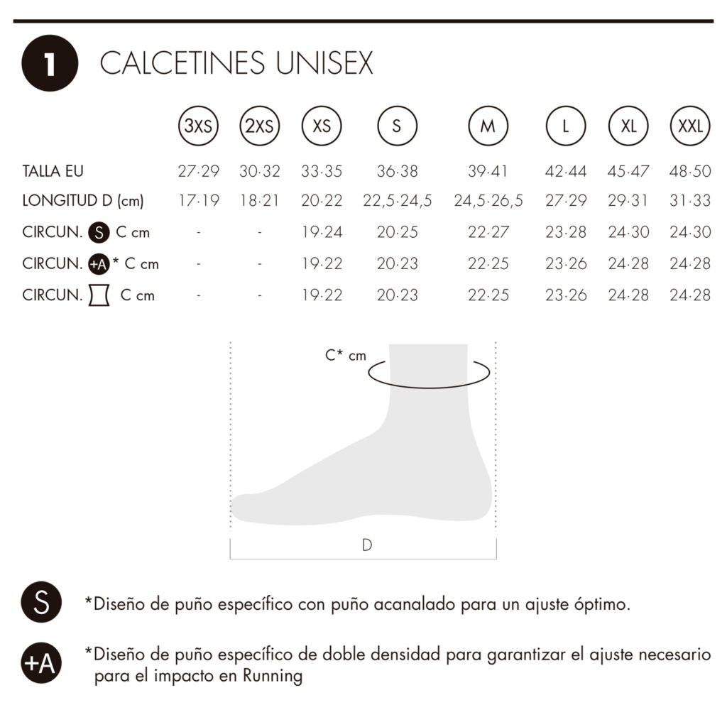 Modelo altura H3, 6 cm sobre la zapatilla (Lowcut, de corte bajo). Diseñados para entrenar en pista y asfalto a medias-largas distancias. Cuenta con el ajuste extra +A para un mejor acople sin opresión. Confeccionado sin costuras en su perímetro y, la puntera, cerrada punto a punto. Asimétrico y con una franja de adaptabilidad y de anti-deslizamiento en la zona del empeine. Nuevo tallaje para proporcionarte un mayor ajuste y confort. Zonas de mayor transpiración en los puntos de más sudoración y además con un reflectante en la parte trasera superior. Diseñado con la tecnología Bmax Tetra para combatir los principales causantes de las ampollas como son: El sobrecalentamiento, la humedad y la fricción. Desarrollados con la estructura ESP 1 y sustentado por la rejilla Silver base Layer que le confiere un alto poder antibacteriano a la prenda.