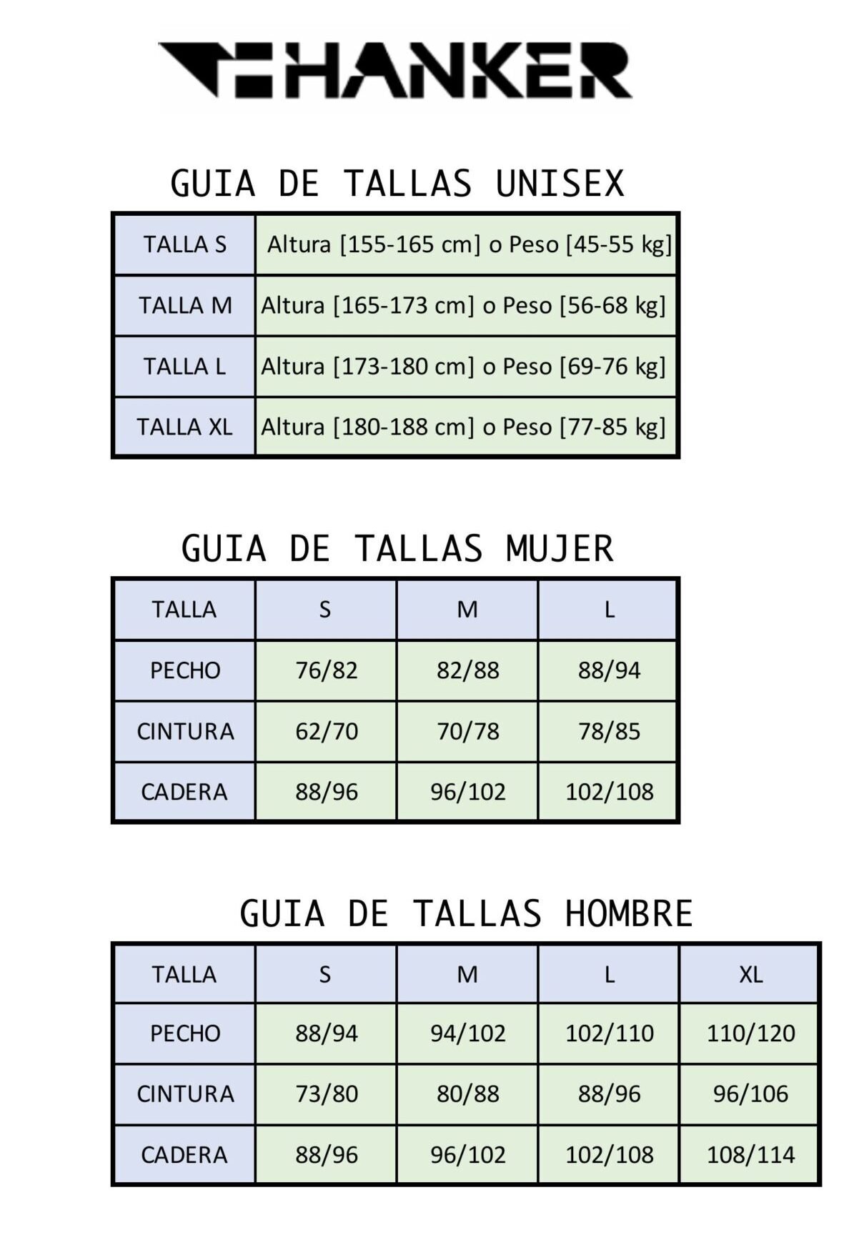 M – Altura [165-173 cm] o Peso [56-68 kg]