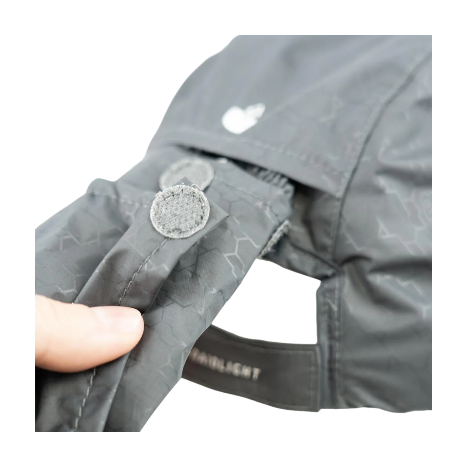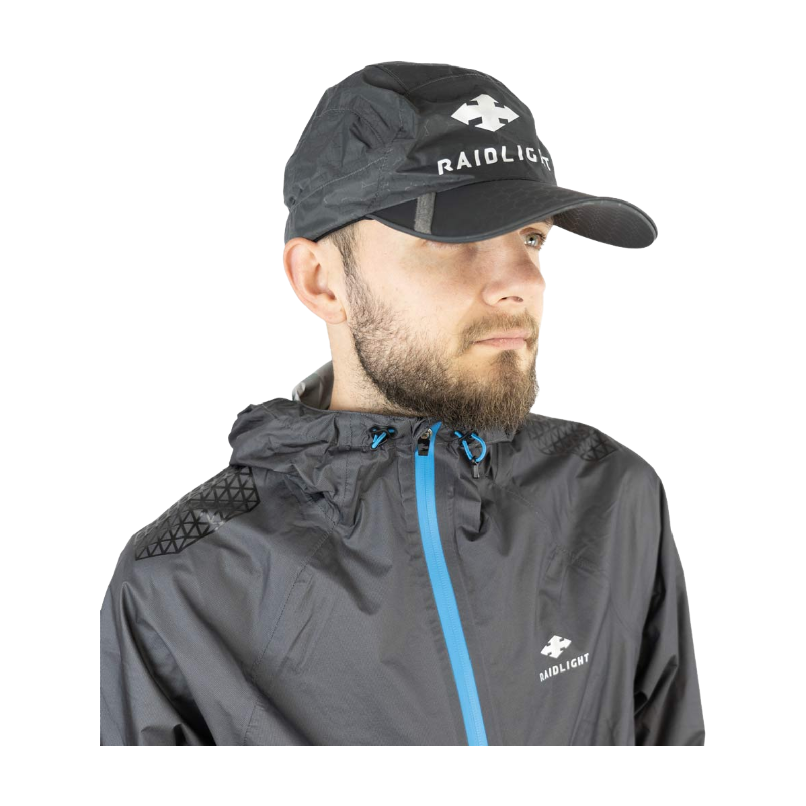 Gorra impermeable y transpirable con membrana Mp+ (15K/15K) y cuello extraíble. Protección total contra la lluvia, ideal para running, senderismo y trail running.