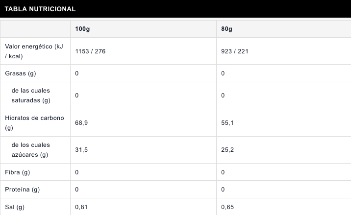 Cada gel de 80g aporta 55 g de hidrato de carbono y 250 mg de sodio.