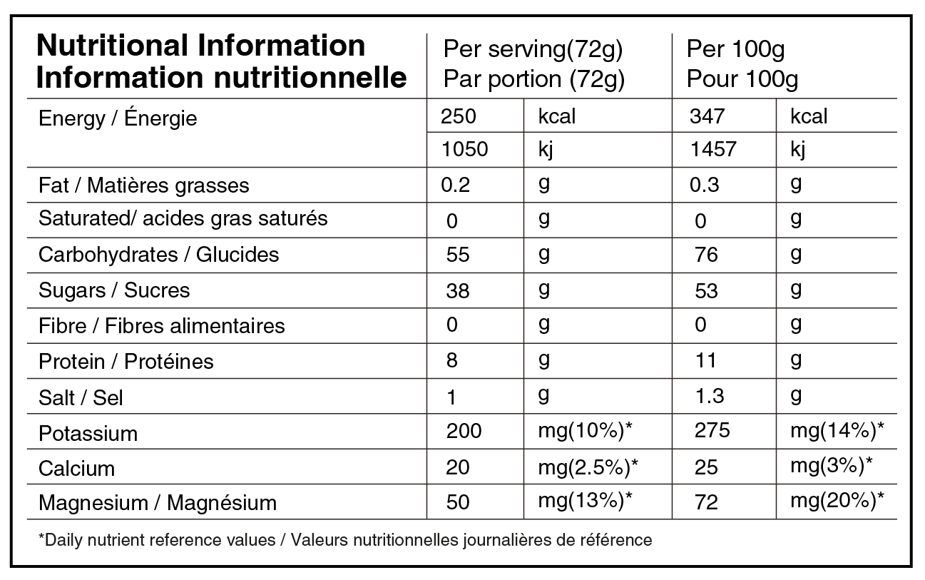 – Palatinosa™: sustituye a la harina de avena. Elaborada a partir de remolacha azucarera, proporciona una liberación sostenida de energía, favoreciendo una mejor oxidación de las grasas y preservando las reservas de hidratos de carbono para aumentar la resistencia.